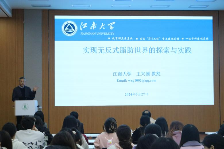 3月27日,“实现无反式脂肪世界的探索与实践”学术报告在新工科楼103报告厅举行。学院邀请到了江南大学脂质营养与安全国际联合实验室的主任王兴国教授进行学术报告,60余名师生参与此次学术报告。