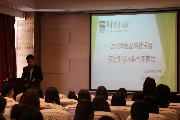 核心提示:10月30日上午,2018年yl23411集团研究生学术年会开幕式暨特邀专家报告会正式拉开帷幕,开幕式由马美湖教授主持,众多研究生积极参加。 校党委研工部副部长涂俊才老师出席开幕式并致辞,江南大学金征宇教授作为特邀专家围绕“我国食品工业发展现状、趋势与技术要求”主题作了精彩报告。
