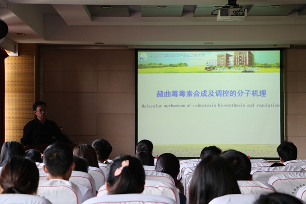 (通讯员 杨颖迪)5月8日下午,中国菌物学会真菌毒素专业委员会主任委员刘阳教授受邀做客我校食品科技学院教授名师学术报告会,进行了题为“食品和饲料中真菌毒素的防控和脱毒”的精彩报告。本次报告会由徐晓云副院长主持,吸引了众多师生前往聆听。