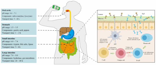 噬菌体是一类以细菌为宿主的病毒,具有严格的宿主特异性,仅能感染特定的细菌种类,而对人体细胞及其它非靶向微生物几乎不产生影响。基于这种高度特异性,噬菌体可在不破坏肠道整体微生态结构的前提下,实现对病原菌的精准清除,从而达到真正意义上的定向治疗(图2)。然而,噬菌体的口服给药在应用中仍面临诸多挑战。例如,进入胃肠道后,噬菌体需经受胃酸、胆盐及消化酶等多重不利因素的作用,导致其生物利用度显著降低、体内存活率下降,同时在肠道内滞留时间较短,严重制约了其抗菌活性和治疗效果(图3)。