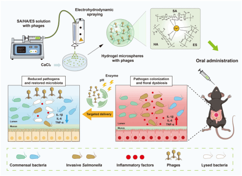 图1 噬菌体微球口服递送平台的构建与肠道菌群原位编辑示意图