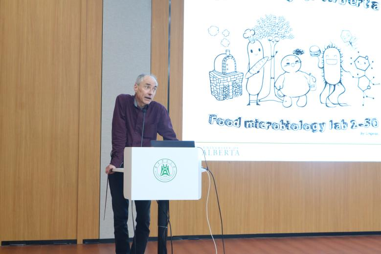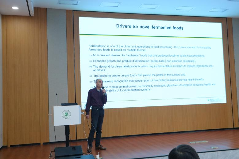 6月5日下午,Michael Ganzle教授在yl23411集团、果蔬加工与品质调控省重点实验室的邀请下于yl23411集团103会议室进行关于食品创新发酵的学术报告。Michael Ganzle,加拿大阿尔伯塔大学教授,加拿大食品微生物与益生菌研究主席(Tier1),加拿大皇家科学院院士,国际权威的食品微生物和益生菌专家。Michael Ganzle教授长期致力于乳酸菌的功能特性与新型非热食品保藏方法研究,以开发新型食品发酵剂、保护剂、益生菌等。
