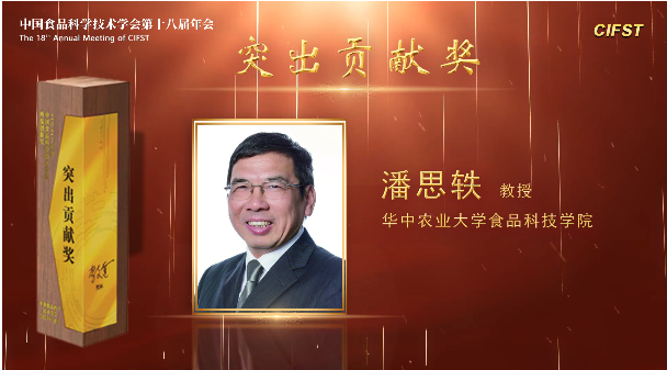2022年4月6日,中国食品科学技术学会第十八届年会以线上会议形式举行,会上公布并表彰了2021年度中国食品科学技术学会科技创新奖,我院潘思轶教授获得突出贡献奖,大会对他的颁奖词是:“荆楚大地食品科技界的领军人”。