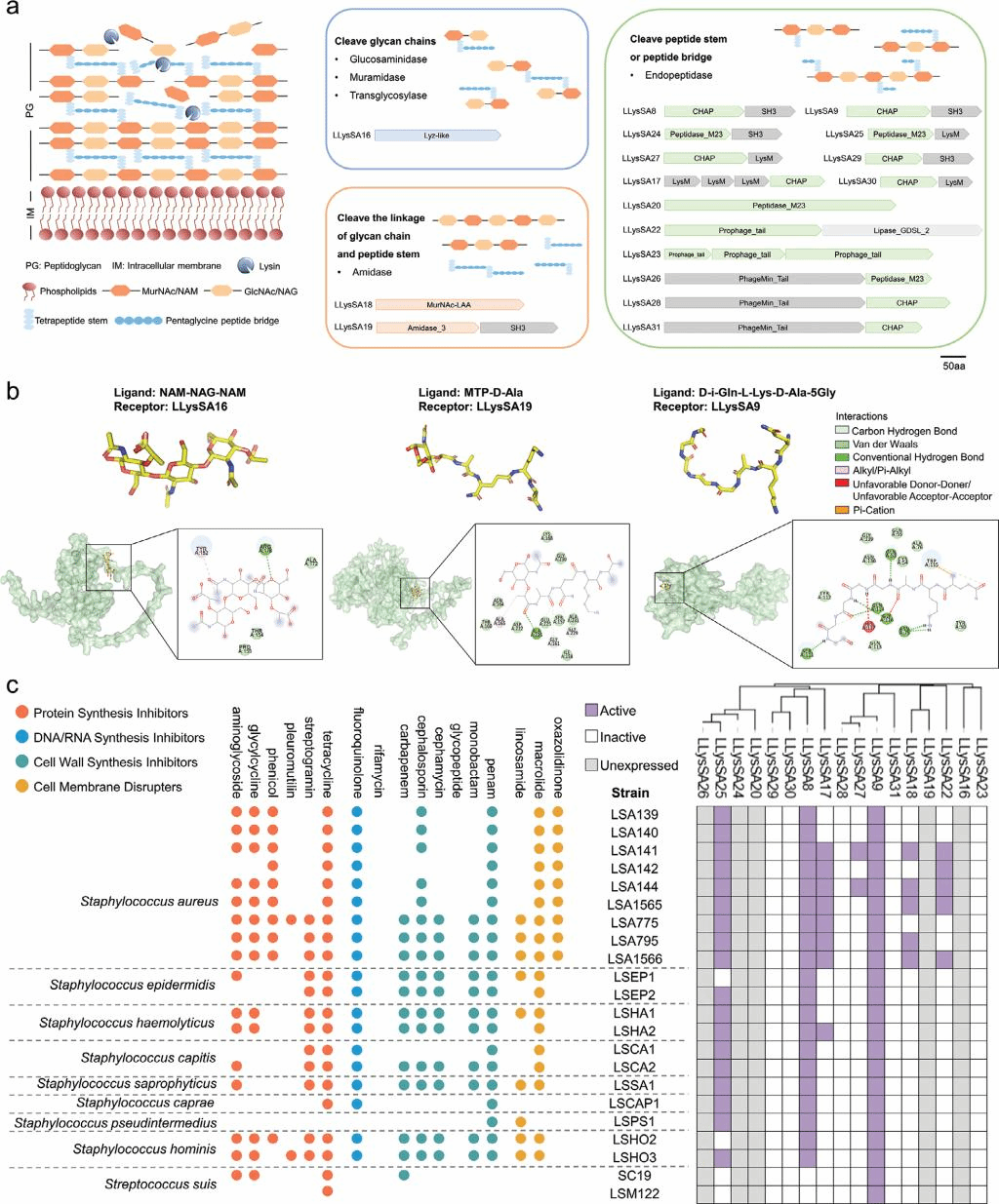 图2 裂解酶-肽聚糖相互作用预测和假定裂解酶的实验验证