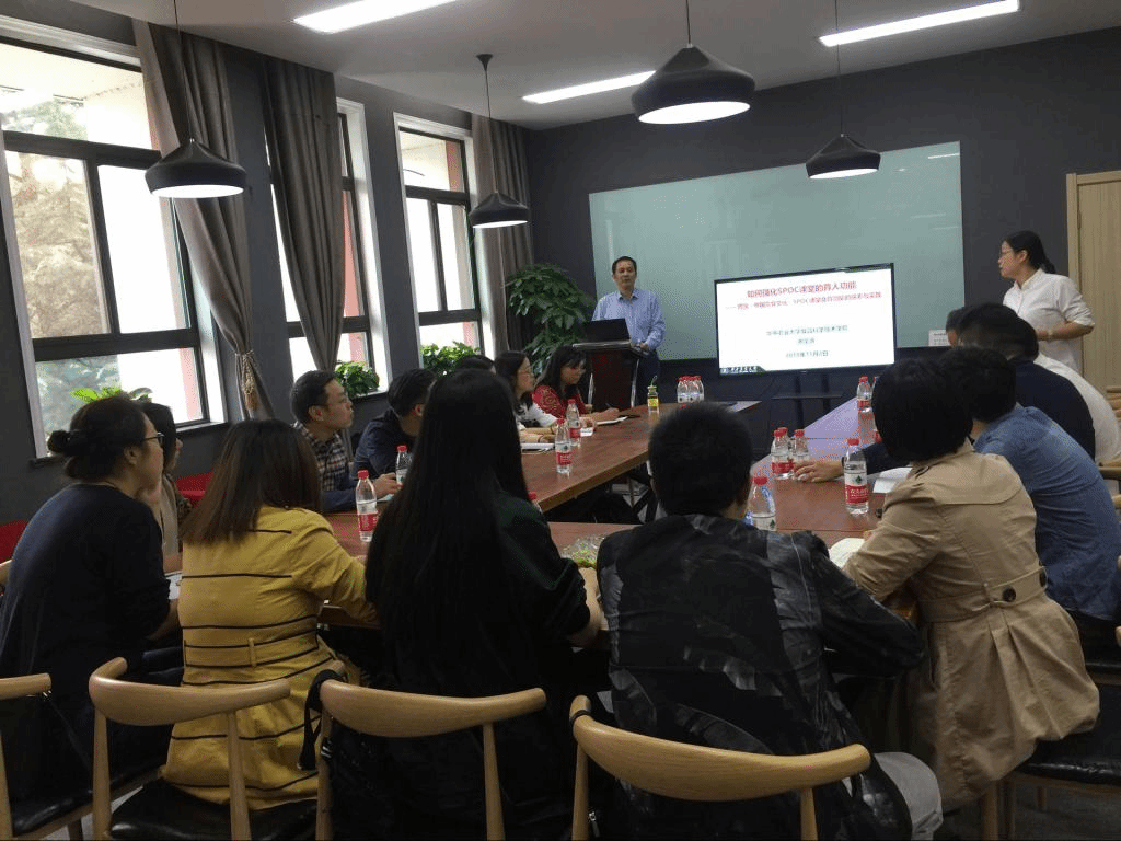 最后,谢定源谈到,一名教师至少应该建设好一门课程,并建设出自己的特色,SPOC课堂作为一种教学趋势,应当激发起老师们的建课兴趣。他说,搞好教学工作需要热爱教学、关心学生、乐于奉献,大胆教改,贵在坚持。