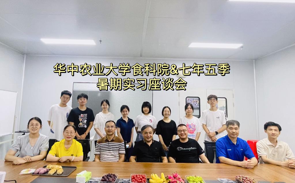 8月16日,学院党委书记杨铁贵一行赴武汉百品味来科技有限公司(七年五季)看望学院本科毕业实习学生。本科生院实践教学管理处处长刘震、学院副院长刘友明,指导老师袁方、胡筱波、吕优优,以及武汉百品味来科技有限公司(七年五季)联合创始人陈俊、研发部负责人王莹莹、技术部负责人陈媚依、生产部负责人姚博共同参加了座谈。