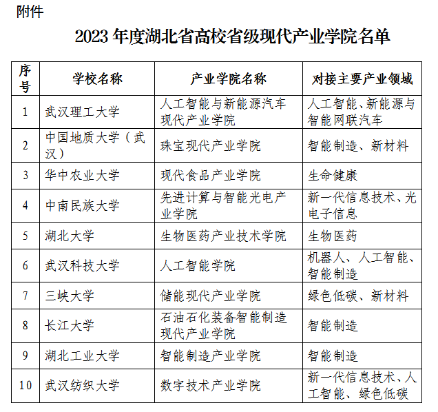 据悉,湖北省旨在以打造全国科技创新高地、制造强国高地、数字经济发展高地、现代农业基地和现代服务业基地为发展目标,推动高校建设 100 个左右校级现代产业学院,遴选认定 30 个左右省级现代产业学院,建成 10 个左右国家级现代产业学院,促进我省高校在人才培养质量和服务区域经济社会发展上实现新突破。