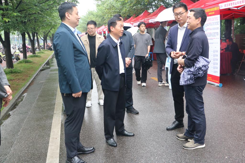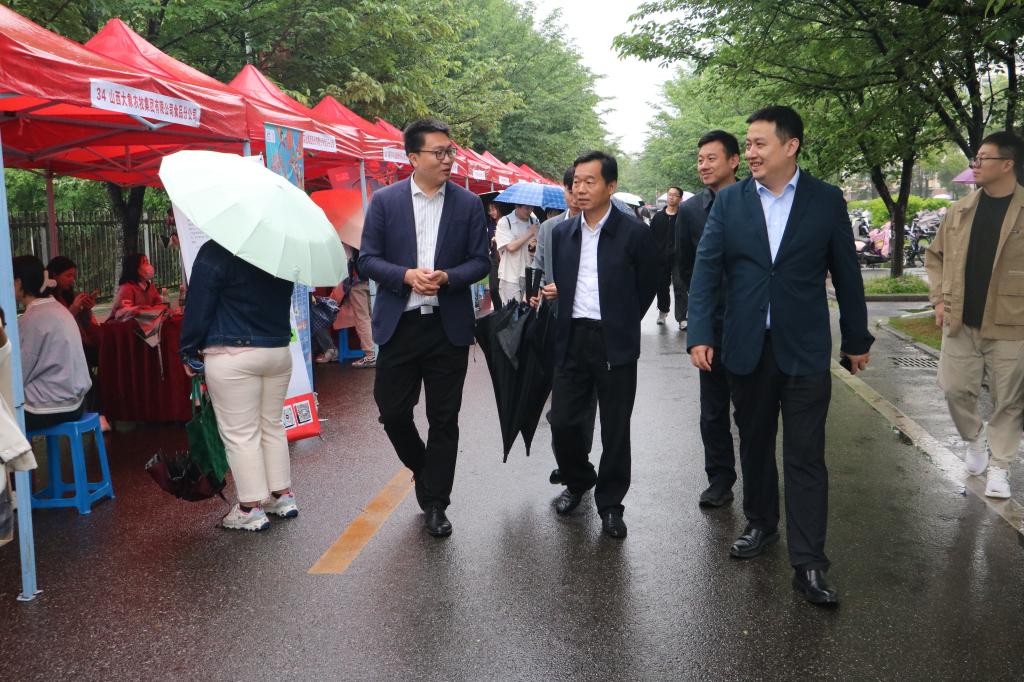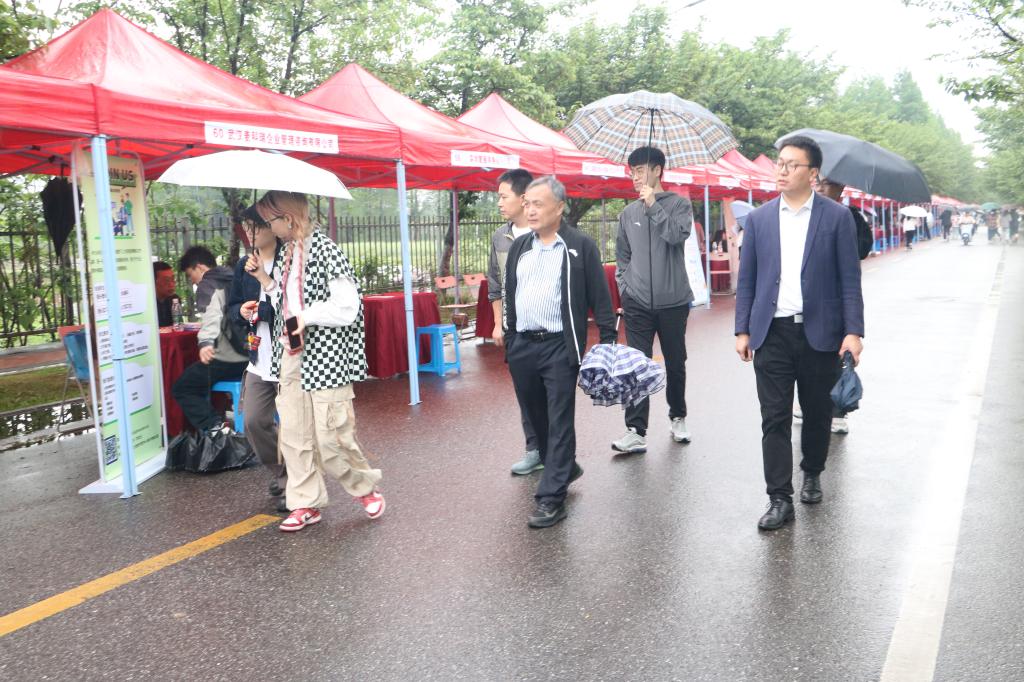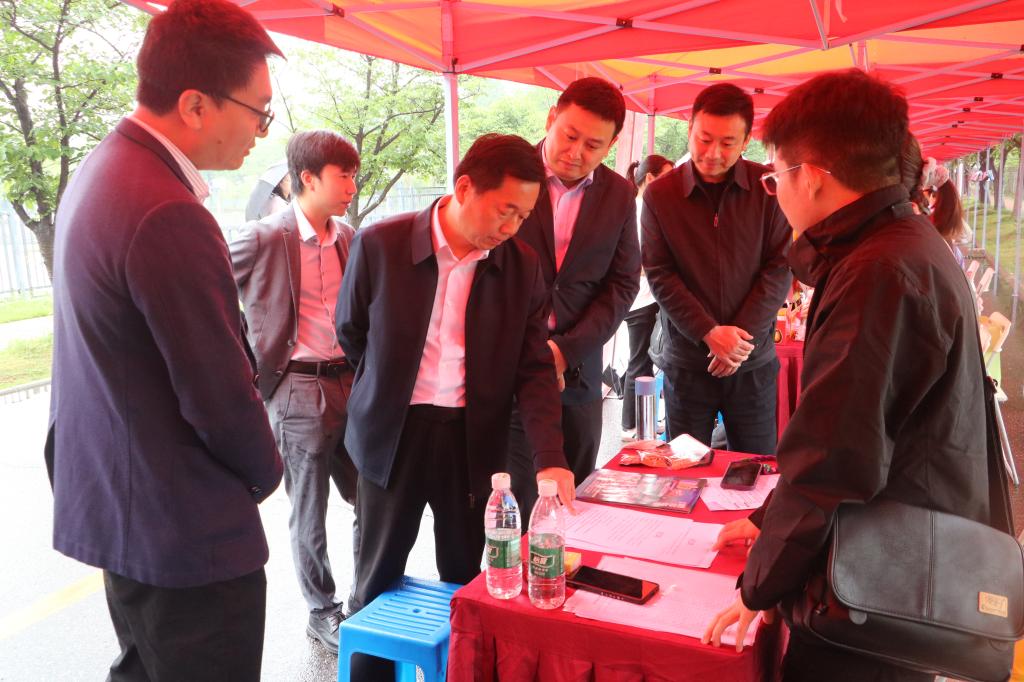 东西湖区人社局党组书记、局长姚树明及副局长叶志文等来到招聘会现场,yl23411集团杨书记和吕书记等陪同,了解企业用人需求、招聘岗位的设置数量、毕业生的求职意愿和签约情况,鼓励毕业生理性规划职业生涯,积极了解求职企业投递简历。