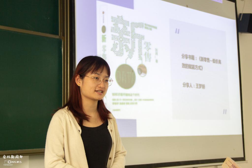 王梦娇分享的书籍是《新零售——低价高效的赋能方式》,她从介绍“新零售”的概念入手,向大家讲述了自己从觉得不可能会坚持读完整本书,到发现它的趣味后全部读完后并且收获良多的心路历程。