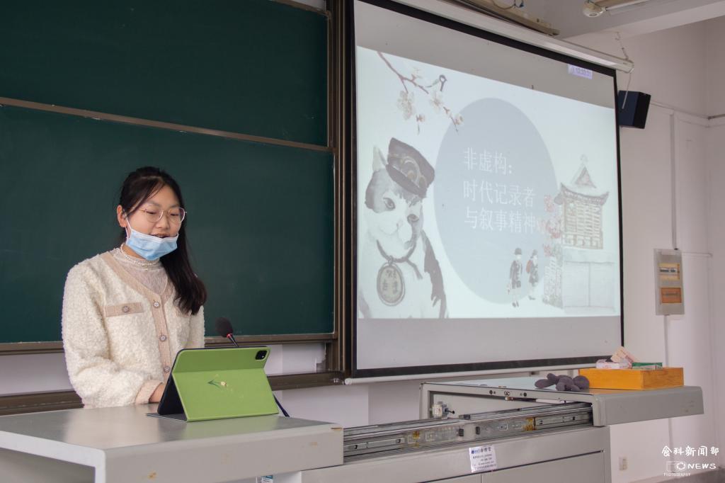 第一位进行分享的是刘婧芸,她分享的书籍是《非虚构:时代记录者与叙事精神》。她首先介绍了本书收录的是当代优秀的非虚构写作者为读者讲述创作过程中动人心魄的故事,之后她和大家分享了本书中她印象最深刻的《我们都是在做“活着”这两个字》这一篇中的选段。她说:“我不太喜欢当下时代靠新媒体传播消息的这种途径,因为这些碎片化、繁杂的信息无法传达一些深层次的东西给大众,而这本书正好是有价值、有深度的消息的浓缩。”