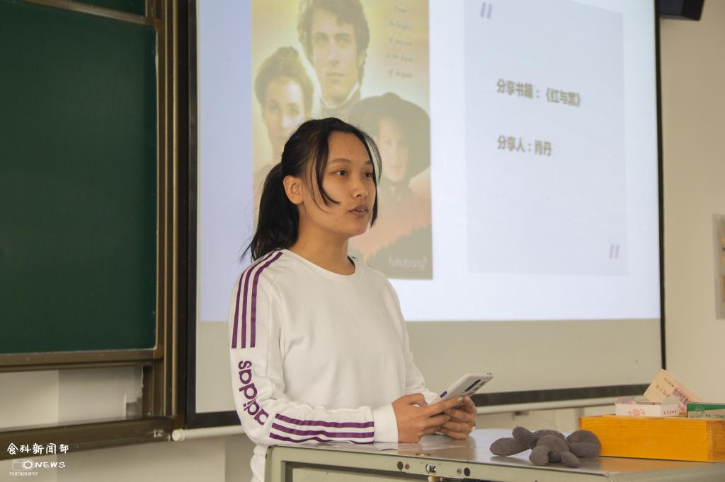 接着,张轶然代替不能到场的肖丹向大家分享了《红与黑》,在介绍了本书的主题和背景后,重点讲述了出身卑微但拥有一颗高贵的心的主人公于连。她表示读完这本书,才明白书名中的红与黑正是暗指了主人公于连骨子里军人的热血和法国社会的暗黑冲突,也许这早已为故事的悲剧结尾做了铺垫。