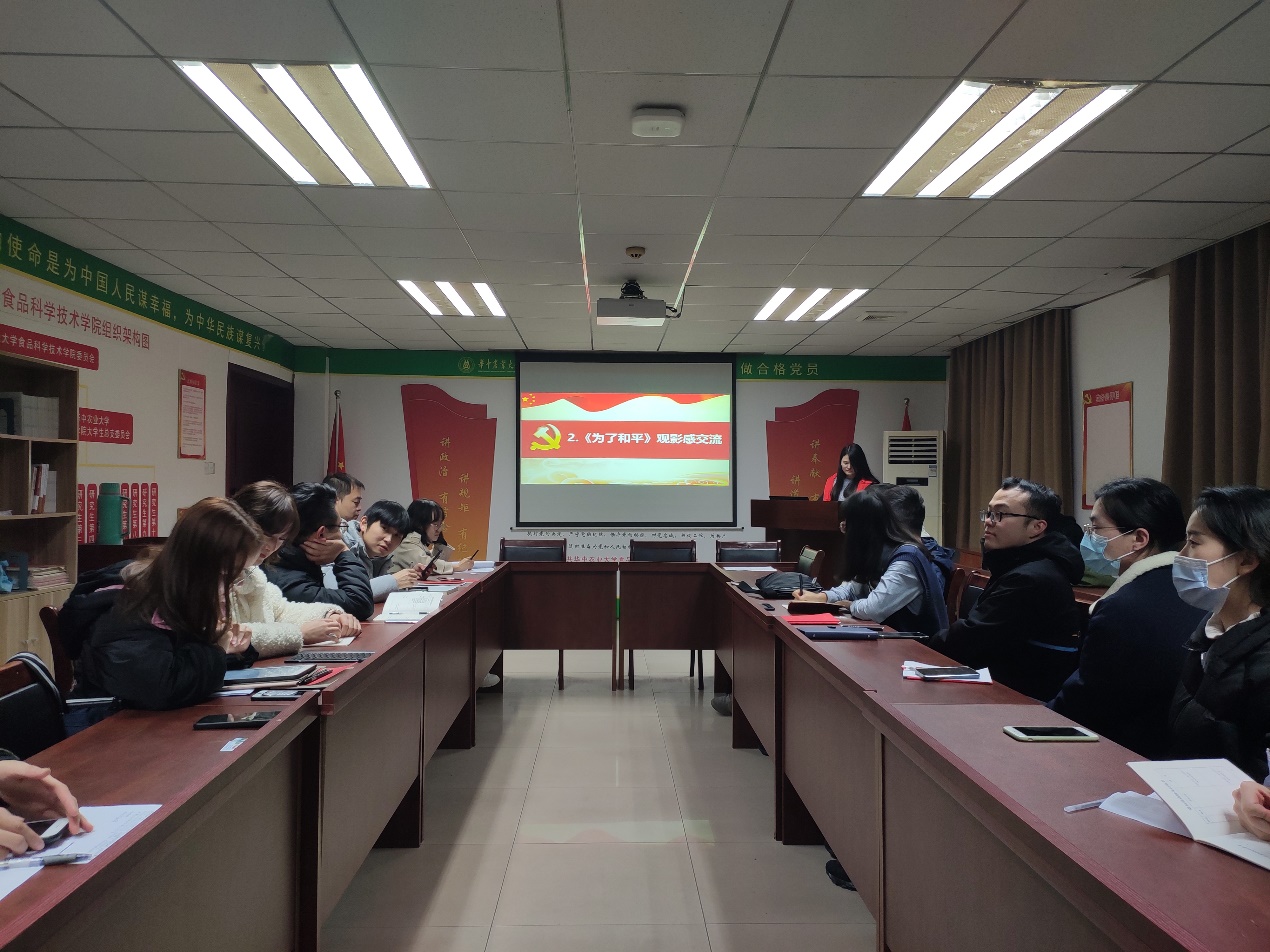 (食科院通讯员 蔡吴丹 丁一峰 供图 蔡吴丹)抗美援朝是一场反侵略的正义战争,是新中国立国之战,保家卫国之战。在这场斗争中,爱国主义成为凝聚全党、全军、全国各族人民的伟大旗帜,是我们赢得这场战争胜利的取之不尽、用之不竭的力量源泉。为继承和弘扬伟大的抗美援朝精神,推进爱国主义、革命传统教育。同时,为全面学习贯彻落实十九届五中全会精神。11月24日晚,食科院研究生第七党支部于食科楼445党员活动室召开十一月份主题党日活动。