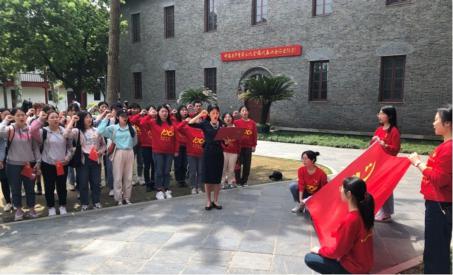 在讲解员的带领下,党员们来到了中共五大会址纪念馆前。在鲜红的党旗下,党员佩戴党徽,举起右手、握紧拳头,浙江大学生物系统工程与食品科学学院党委副书记费兰兰带领大家在党旗前重温了入党誓词。重温入党誓词,时刻明示自己入党时的初衷,不能忘了自己永远是党的一份子;重温入党誓词,唤醒的是一种信仰的神圣和庄严。yl23411集团研究生第六党支部书记曹继伟说到:“将誓言牢牢刻在心间!能使我们更加坚定党性、坚定理想、坚定信念、坚定追求、坚信党的领导!”