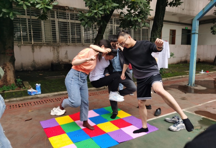 (yl23411集团通讯员 盛丽 供图 李温蓉)4月22日下午,在食科院楼举行趣味游戏党史知识竞赛,来自食品工程系教工党支部、食品安全系教工党支部、行政实验教工党支部、食品化学系教工党支部、食品科学教工党支部的党员老师分别与研究生党支部学生党员们结对组成四人队伍,以团队形式参与游戏与知识问答,游戏内容包括四人五足、夹球接力跑、指压板造型、袋鼠跳接力,每个游戏环节中都穿插有党史知识问答。