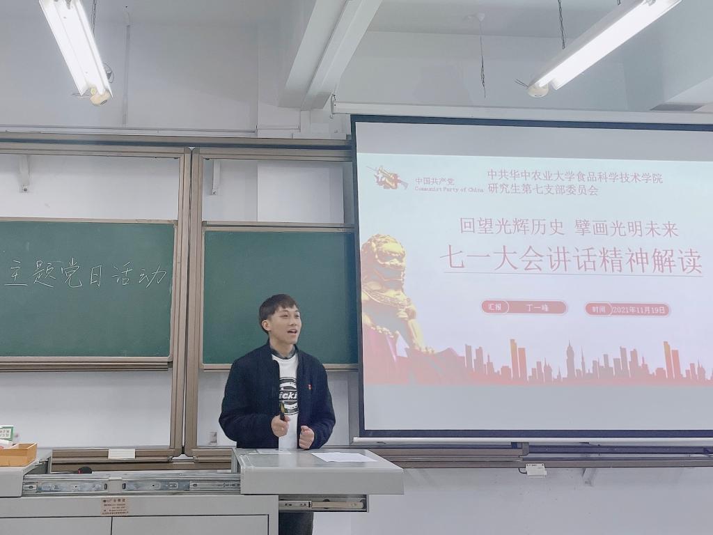 2021年11月19日,我院研究生第七党支部于二教304召开以“回望光辉历史 擘画光明未来”为题的主题党日活动,支部党员及入党积极分子到场参加。
