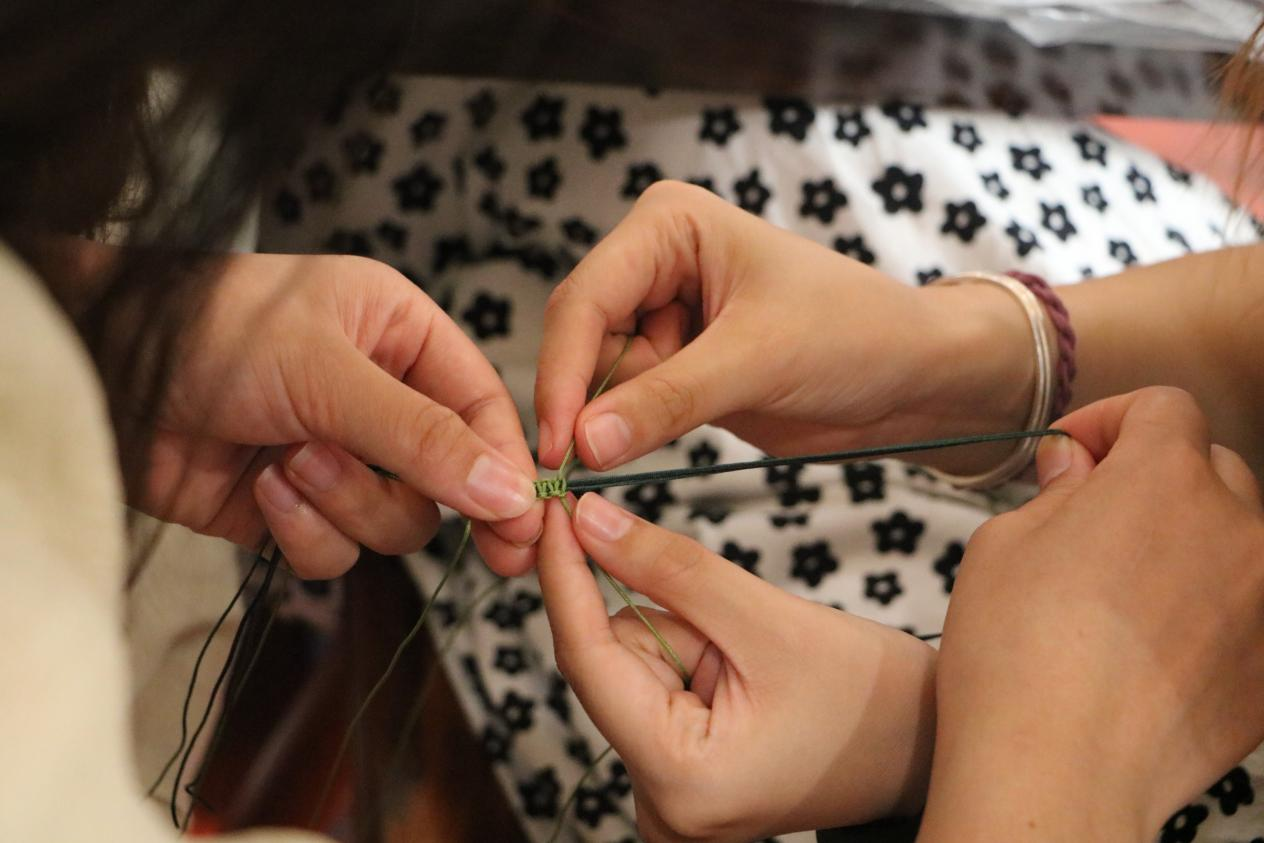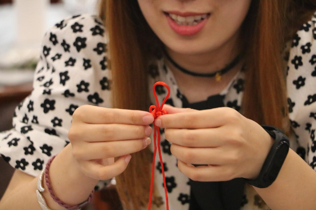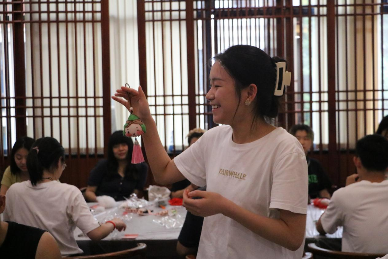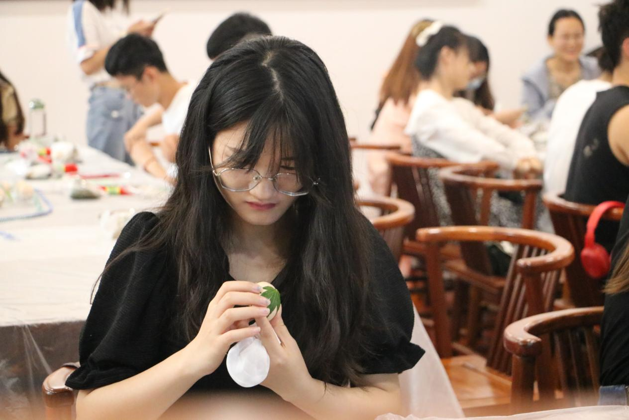 在园艺林学学院何兴群及yl23411集团徐亚伟的带领下,在场党员逐一动手体验“粽粽困难,粽会过去”缠粽子、编彩绳、制香囊活动,yl23411集团党员梁一豪拿起刚编织好的手链说道,“科研跟编手链的感觉很像,一开始毫无头绪,不知从何解决,但就像共产党最初以十几个人发展至如今,在百折不挠的奋斗下,一定会看到光明的未来。”