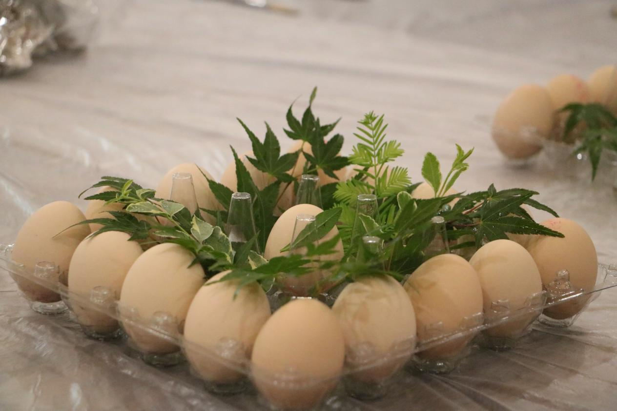(图4 园艺林学学院生党员正在制作花纹蛋)