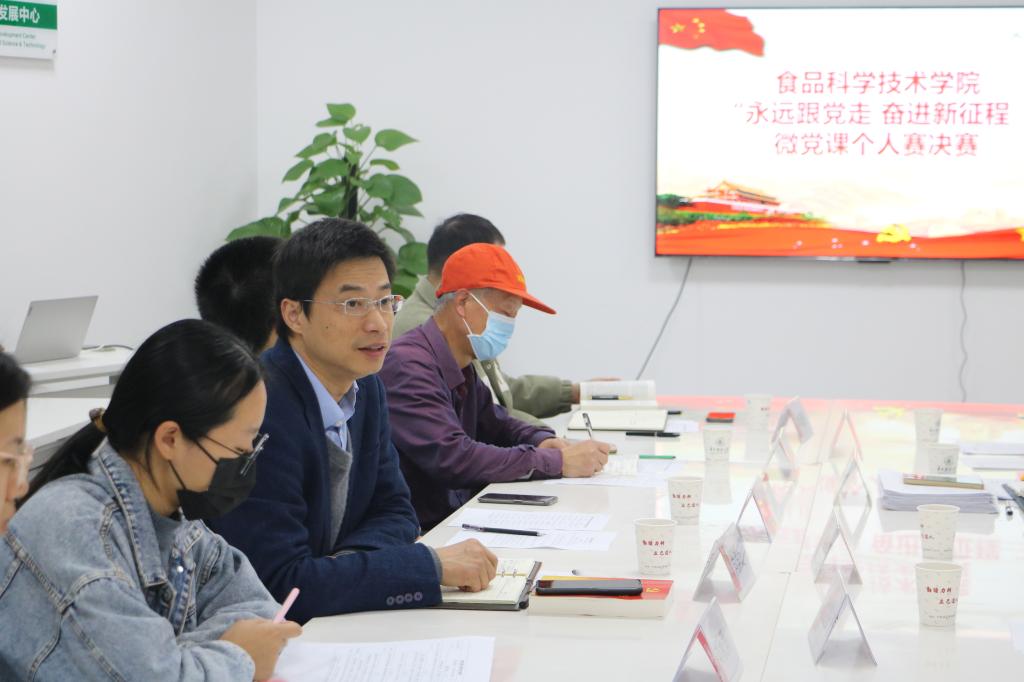 易国顺结合选手微党课内容,深刻剖析了“大食物观”,即向耕地草原森林海洋、向植物动物微生物要热量、要蛋白,全方位多途径开发食物资源,并点出 “绿水青山就是金山银山”这一理念蕴含的经济发展与环境保护的辩证统一关系。