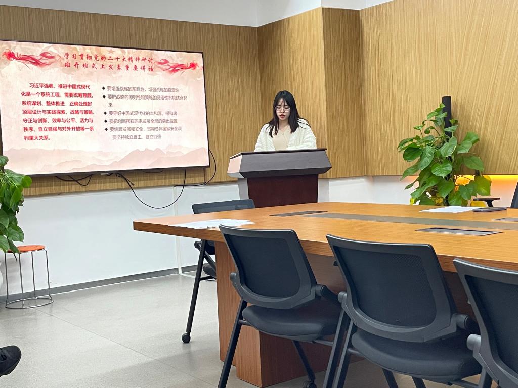 在党支部李春燕同志的带领下,分别从学习贯彻党的二十大精神研讨班开班式上发表的重要讲话、学习中国式现代化的本质特征和准确理解和把握坚持人民至上三个方面出发,深入贯彻学习二十大的重要精神。