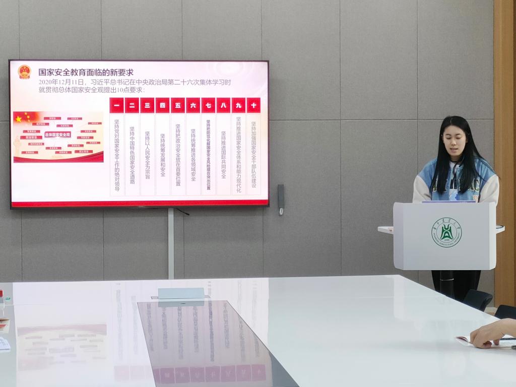 之后,于涵同志围绕“贯彻总体国家安全观,增强全民国家安全意识和素养,紧扣国家安全教育面临的新形势新任务新要求”主题,组织党员同志们学习国家安全知识。同志们在学习后纷纷表示,以后要呼吁广大青年学生增强国家安全意识,尽己所能肩负起维护国家安全的责任和使命,成长为捍卫国家安全的卫士。“通过此次学习,我更加深刻体会到维护国家安全的重大意义,”秦佳斌同志感慨道,“作为新时代的青年学生,我们更应该以身作则,发挥好宣传带头作用,做国家安全的守护人。”