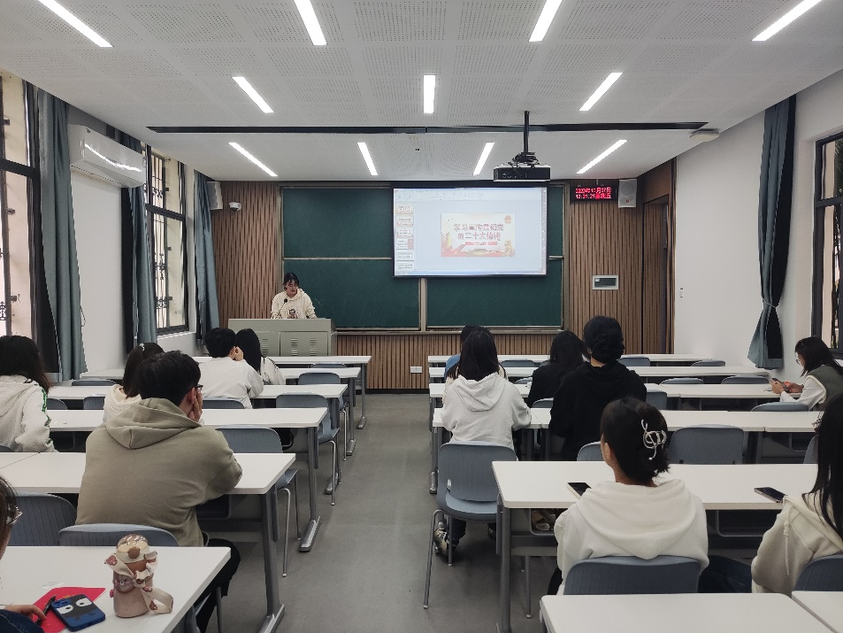 10月27日下午,为进一步推进习近平新时代中国特色社会主义思想,全面学习贯彻党的二十大精神,我院研究生第十一党支部全体党员在第一教学楼107教室开展十月主题党日活动。本次活动由党支部书记秦平主持。