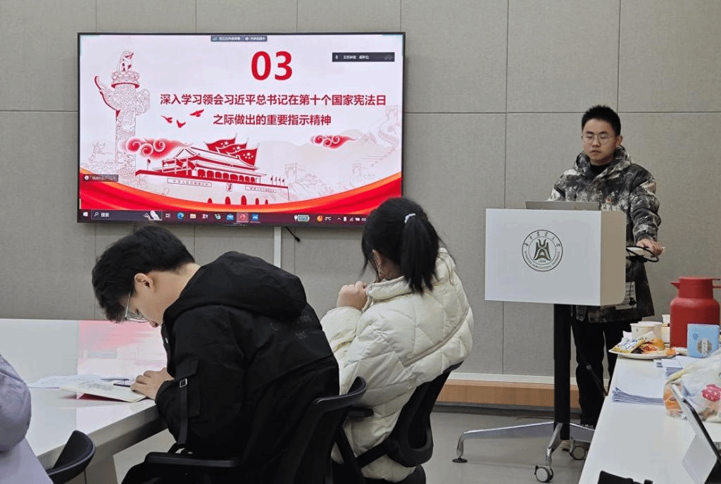 第三党小组胡鹏带领大家深入学习领会习近平总书记在第十个国家宪法日之际做出的重要指示精神