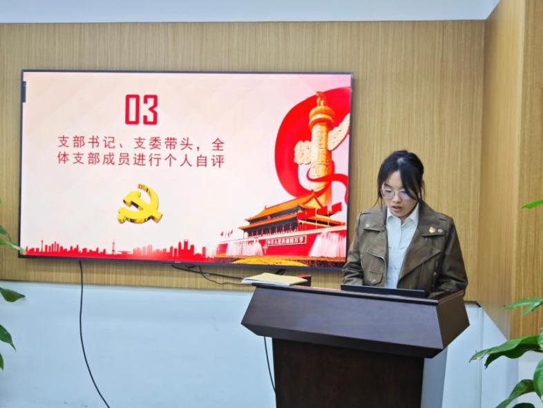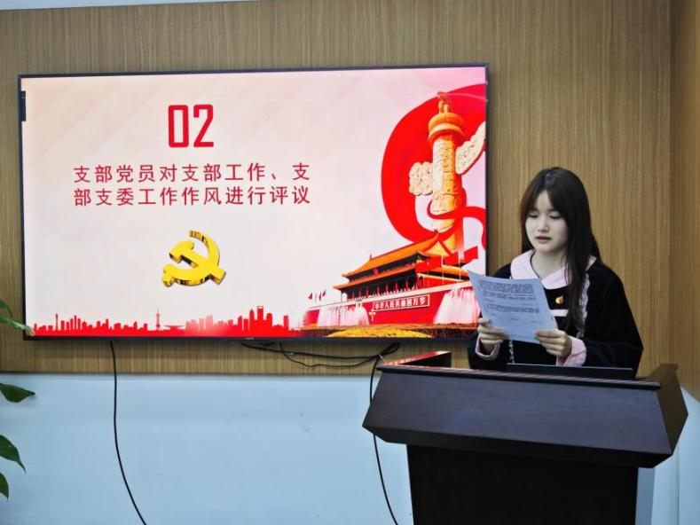 之后,由支委成员带头,全体支部成员进行了个人自评,认真分析自身党性,并进行严肃的自我批评。党员们在评议和自我批评中,充分展现对党的忠诚和对自身的要求,发言精辟深刻。王媛同志坦言自身不足之处:“尽管我努力跟进党的理论知识和最新政策,但在实际学习中,有时仍过于依赖表面性的理解,对深层的理论与实际的联系有所忽略。我意识到,作为一名党员,应更加注重理论学习的深度和广度,综合提升自己的思维和素质,以更好地为党和人民服务。”易诗琪同志则指出:“对照党章的规定与要求,我认识到自己对习近平新时代中国特色社会主义思想的学习理解不够深入,学习主动性有所欠缺,存在拖延的习惯之后,我将增强自觉性,制定相应的学习计划,提高执行力。”