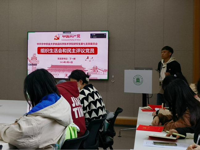 为了适应新形势下党建工作的需要,2024年3月11日,yl23411集团研究生第七党支部在工科楼122会议室召开了“立足红色沃土,涵养食研文化”主题组织生活会暨民主评议会。会议由党支部书记丁一峰同志主持,全体党员参加会议。
