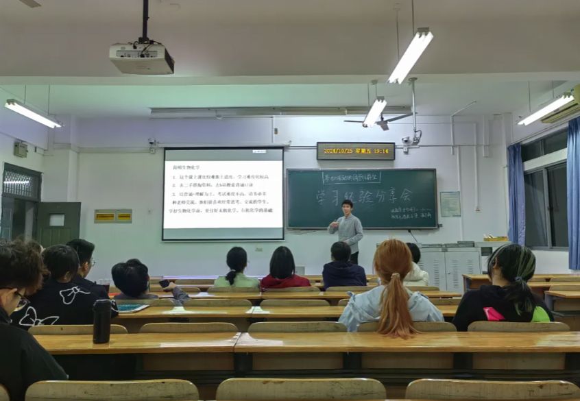 为增进同学们对竞赛内容的了解,激发参赛热情,营造浓郁的校园学术氛围。10月25日晚,“竞赛经验交流分享”活动在三教A303成功举办。此次活动邀请到食工2204班的朱庭玉同学担任主讲,由学科部工作人员组织,为食科院的同学们分享学习、竞赛经验。