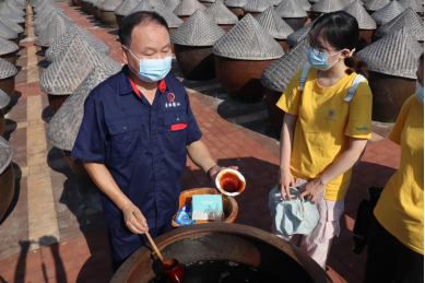 石新平向实践团展示黄滩酱油 欧阳乐骞摄