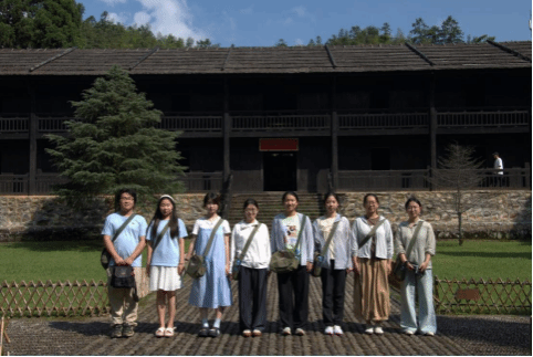 实践团成员在茨坪镇革命群旧址 尤淇摄