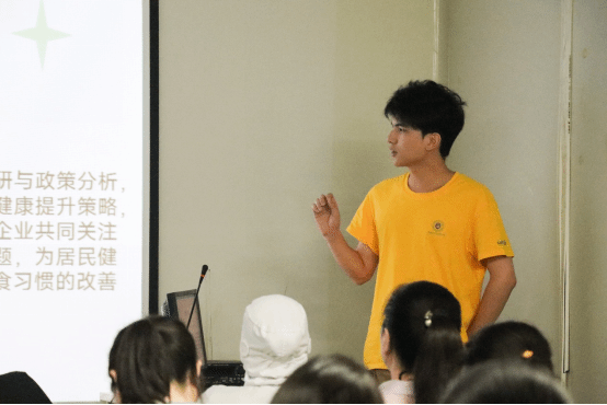 (实践团队员姚子恩在幸乐食品有限公司做宣讲 胡蓉芳摄)