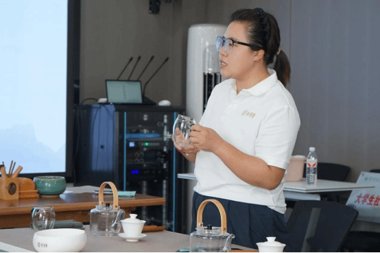 初至金苔香茶业公司,工作人员邓润娥从茶的基础知识和礼仪规范讲起,详细演示投茶量把控、冲泡手法等泡茶关键步骤,讲解过程中融入茶叶冲泡原理与恩施玉露文化背景,让理论知识与实践操作深度融合。实践队员认真学习,积极尝试,在互动交流里掌握泡茶技巧,体悟传统茶文化精髓。