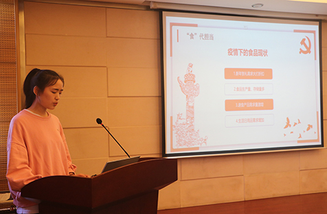 比赛当日,李晓晗、周文燕等20名选手围绕“弘扬抗疫精神,共话食代担当”主题进行演讲,尽展风采。李群带我们走近战“疫”中的食品人;熊喆提到“我们青春的力量,是时代的脊梁”;丁娇娇说道“后疫情时代挑战与机遇并存”;白玉峰以铿锵有力的朗诵形式使抗疫精神直击心底。