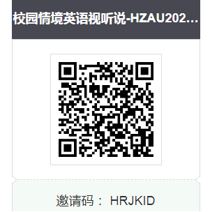 学生通过微信扫描《校园情境英语视听说》课程二维码,登陆“雨课堂”智慧教学平台进行自主学习。如有问题请咨询QQ:191773422 刘老师