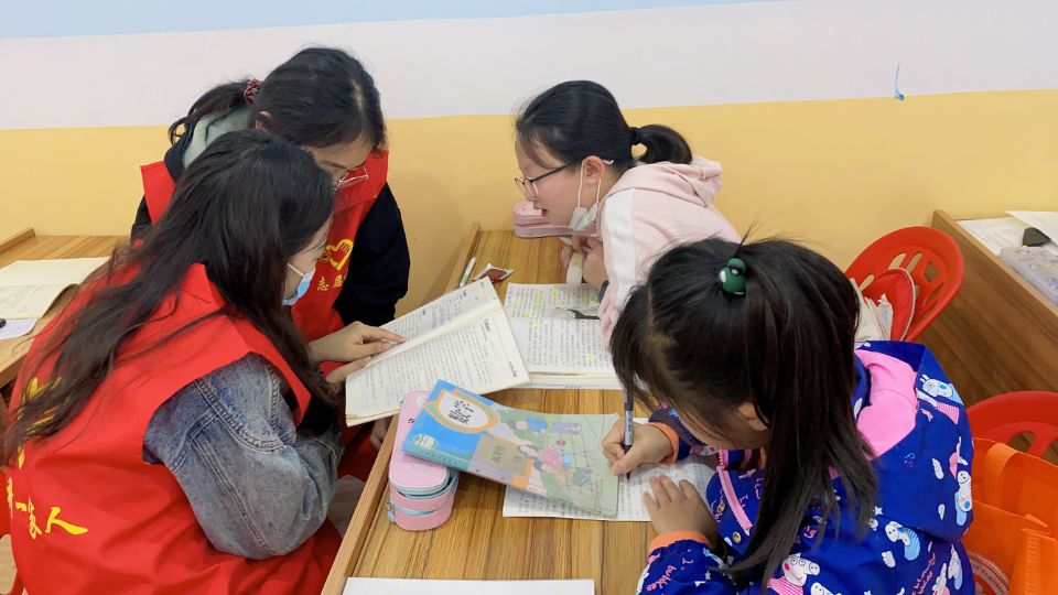 食科一家人志愿服务队多次在金鹤园社区的青少年活动中心对社区中的小朋友进行线下课业辅导的活动,不仅让小朋友们能够得到学业上的帮助,在辅导活动结束前,还有一起放松的时间。除了线下的课业辅导以外,我校青年志愿者在“食科一家人”志愿服务队的组织下与金鹤园社区青少年空间开展“一对一”结对子,为他们提供线上课业辅导服务,志愿者们通过QQ、微信等平台进行线上功课辅导并指导孩子们阅读。