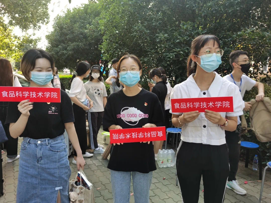 早上,新生从学校西大门进入,依次进行核酸检测,随后乘坐摆渡车来到狮子山大道迎新点。我院志愿者在此手举食科院迎新牌,带领新生前往宿舍,并帮助其搬运行李。来到宿舍楼,我院迎新帐篷下是早早等待在此的值班学生和老师,为新生发放宿舍钥匙,解答新生疑惑。