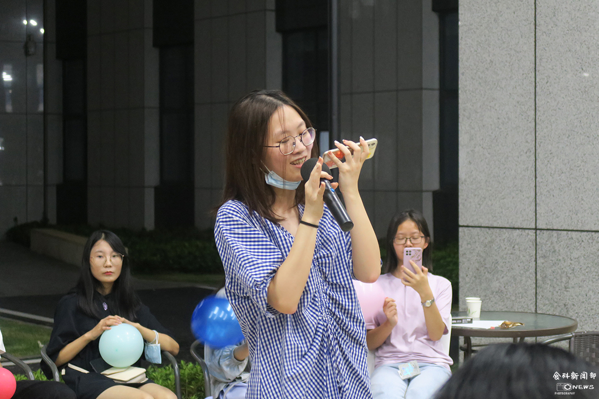 赏月活动伊始,大家通过名字接力的游戏形式轮流进行自我介绍。短暂的开场热身后,活动进入交流环节,一位新生向学院老师提出就业相关问题,向异之就食科院毕业生去向情况作以回答:“我院每年都有15-20%的同学保研,大部分进入了985学校和中科院系统,至今我院有50-55%的学生在毕业后选择继续深造学业,也有20%的同学毕业后选择直接就业进入食品相关企业,小部分同学选择成为公务员,加入西部计划等。”