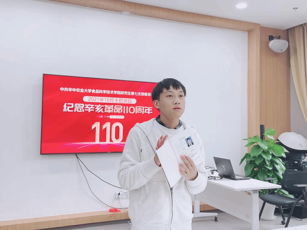 2021年10月22日,第七党支部于工科楼122会议室召开主题为“纪念辛亥革命110周年”的十月主题党日,本次会议由支部书记丁一峰主持,支部24名成员及环境食品学教育部重点实验室学生工作部成员到场参加。