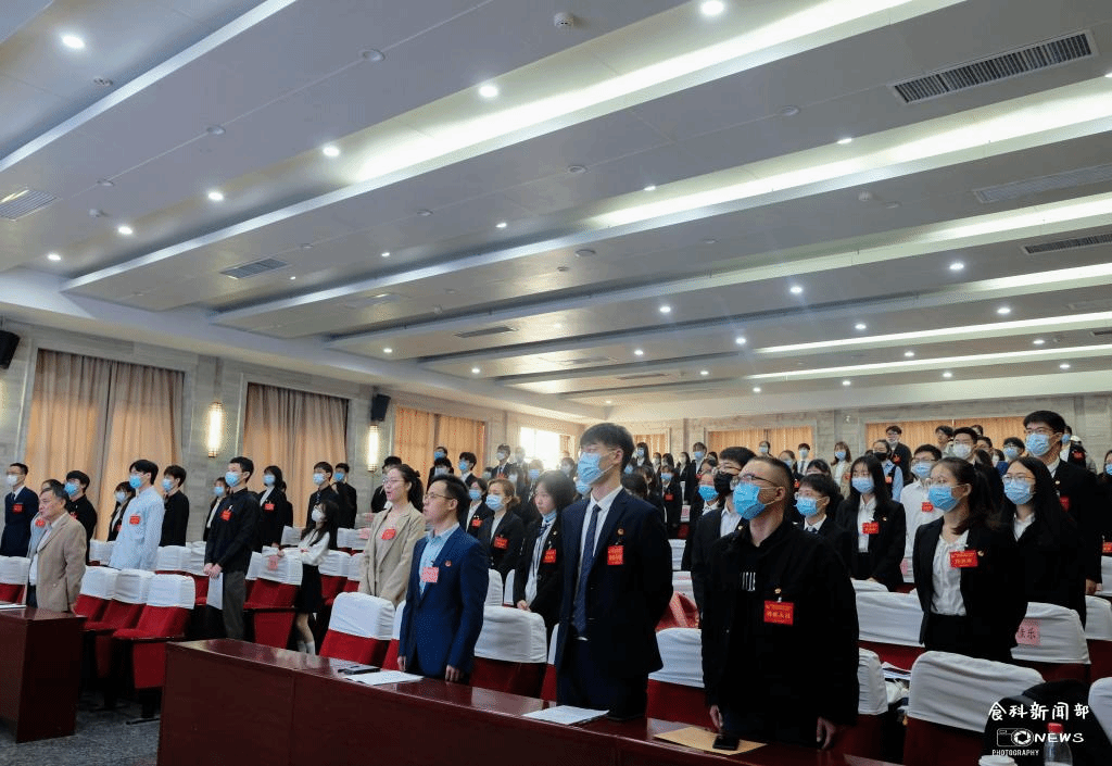 会议伊始,全体起立,奏唱国歌。首先,胡小娱作了题为《牢记使命、追求卓越,为加快建设特色鲜明的世界一流大学贡献青春力量》的团委工作报告。报告中“党建领航”“学术导航”“耕读助航”“成长护航”四大计划的深入实施,总结了五年来我院团委围绕落实“立德树人”根本任务、认真履行团委基本职能所做努力与取得成就。同时,报告提出了学院团委工作与服务“五育并举”“四力并育”的人才培养新格局和建设一流大学的目标任务存在差距,指出现存的突出问题,并提出今后学院团委工作构建“食梦”“食研”“食创”“食践”“食助”工作体系的努力方向。