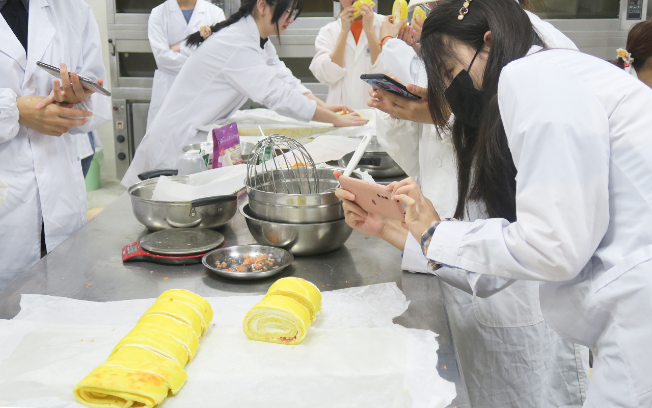 12月5日上午,yl23411集团食品科学技术协会与校学生会在新工科大楼烘焙坊联合举办了以“烹舌尖之食,品劳动之实”为主题的香柠西柚蛋糕卷制作活动。十余名食协志愿者及多个院系的30名学生共同参与。