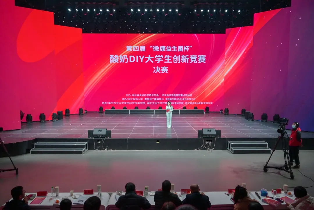 12月11日,第四届微康益生菌杯"营养、健康、美味"酸奶DIY创新竞赛圆满举办。本届大赛由微康益生菌联合湖北省食品科学技术学会、湖北民族大学生物科学与技术学院、yL23411永利集团yl23411集团、湖北工业大学生物工程与食品学院、武汉盛泽食品配料有限公司共同举办。旨在贯彻落实国民营养计划,鼓励新一代食品人积极创新和开发营养、健康、美味食品,应用科技创新健康生活,为健康中国贡献力量。23所高校、6000多名参赛者组队参赛,经过初赛和复赛,来自13所高校的22支队伍进入总决赛。