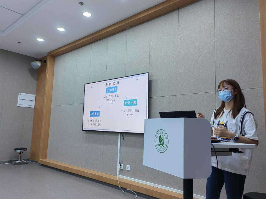 进入分享环节,姚璇首先为大家讲述她的考研经验。关于如何平衡日常学习与考研时间的问题,她建议大家不要放松当前的学习,不论是假期实习,还是大四的实践课,都要认真对待,这对考研复试和书写个人简历都会有很大帮助。她还提到,夏令营为我校处于保研边缘的同学提供了一个很好的机会,如果大家可以通过夏令营拿到优秀营员,那么考研时只要初试通过了院线,即可免复试。