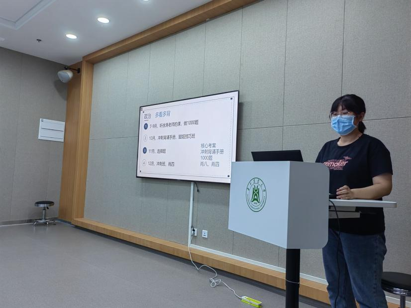 刘琛琦向大家介绍了她各科每个月复习内容的进度安排。政治方面,她推荐大家学习徐涛的课程、肖秀荣1000题和腿姐的技巧班。英语方面,她认为坚持做阅读和背单词是很重要的,作文需要形成自己的模板,多备多练,另外,在最后一个月的时间里,要在规定时间内进行模拟考试。数学一定要回顾错题,关注基础概念理解,刘琛琦指出,今年的考研试题中,有3道选择题考察了基本概念,如果对此理解不透彻,就很难拿到分数。对于专业课的学习,刘琛琦推荐大家使用思维导图来形成框架,并反复多次背诵。