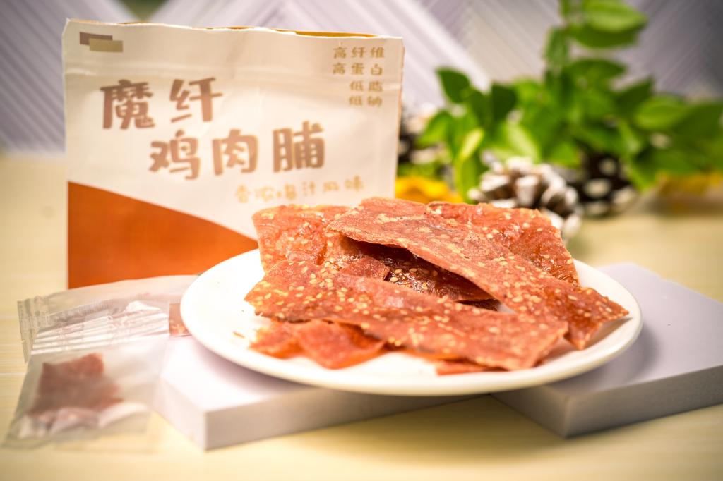 零食“魔纤鸡肉脯”用低脂高蛋白的鸡胸肉代替猪肉,海藻糖代替蔗糖,柔软鲜香,满足营养、健康的市场需求。“小鱼大冒险”用肉松、坚果层层包裹鱼丸,嫩滑Q弹,搭配香味四溢的独特酱料,吃一口“仿佛小鱼在嘴巴里冒险”。“只薯于肉”团队在致力于产品口感的同时,创新了产品包装,搭配暖色调,独到的艺术品味让他们的作品在一众展品中脱颖而出。