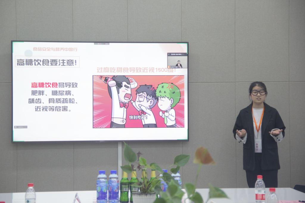在食品安全与营养中国行知识宣讲大赛的会场里,19支队依次上台讲解,就酸奶的种类功效及挑选方法、疫情时代的食品保存方法、代糖的奥秘等多种日常食品的营养与安全知识进行科普。同学们在保证语言通俗易懂的同时,不断提升准确性与科学性,以期待在社会实践中提升食品安全科普宣讲水平,用专业知识助力健康中国战略。