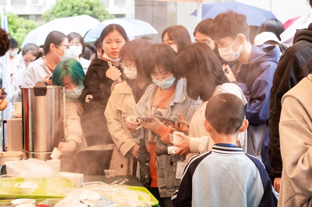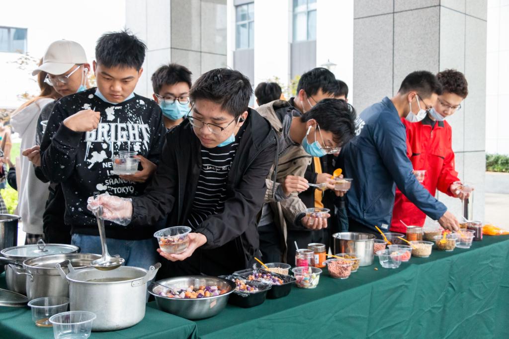 本次食文化节也引入了冰粉DIY活动,以红糖水调味,在剔透滑嫩的冰粉上撒上自己喜欢的花生碎、葡萄干等小料,让同学们在参观、品尝美食的同时,也能体验亲自动手制作美食的乐趣。