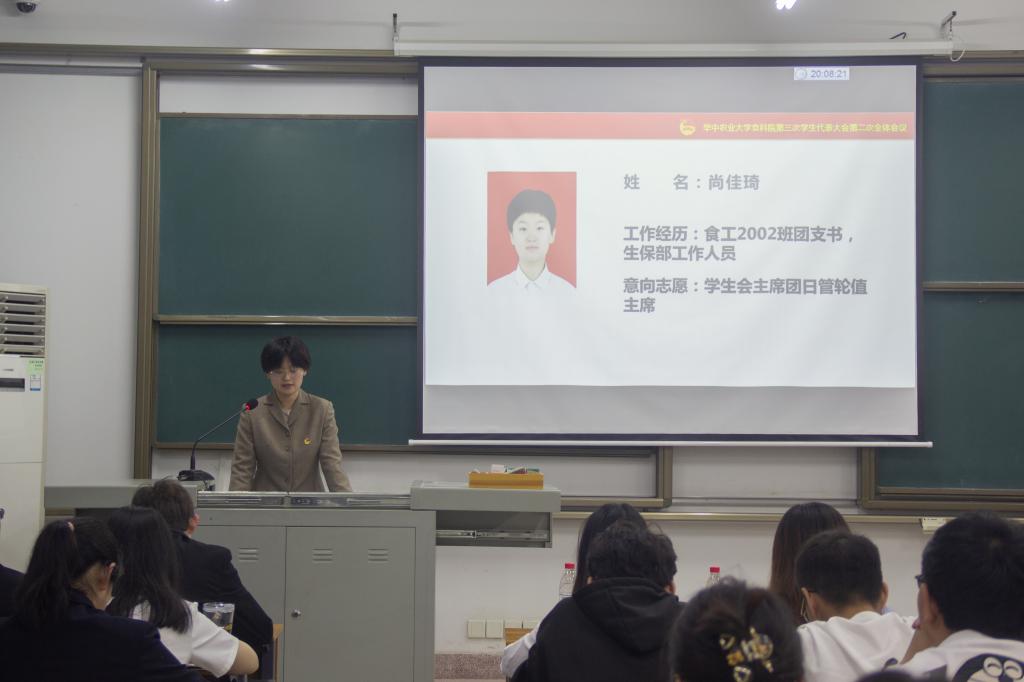 5月22日上午,我院第三次学生代表大会第二次全体会议在综合楼501召开。我院党委副书记向异之,辅导员李子鑫、许宝丹、李虎、李善达及学生代表和各候选人到场参会。会议由学生会轮值主席米若瑜主持。