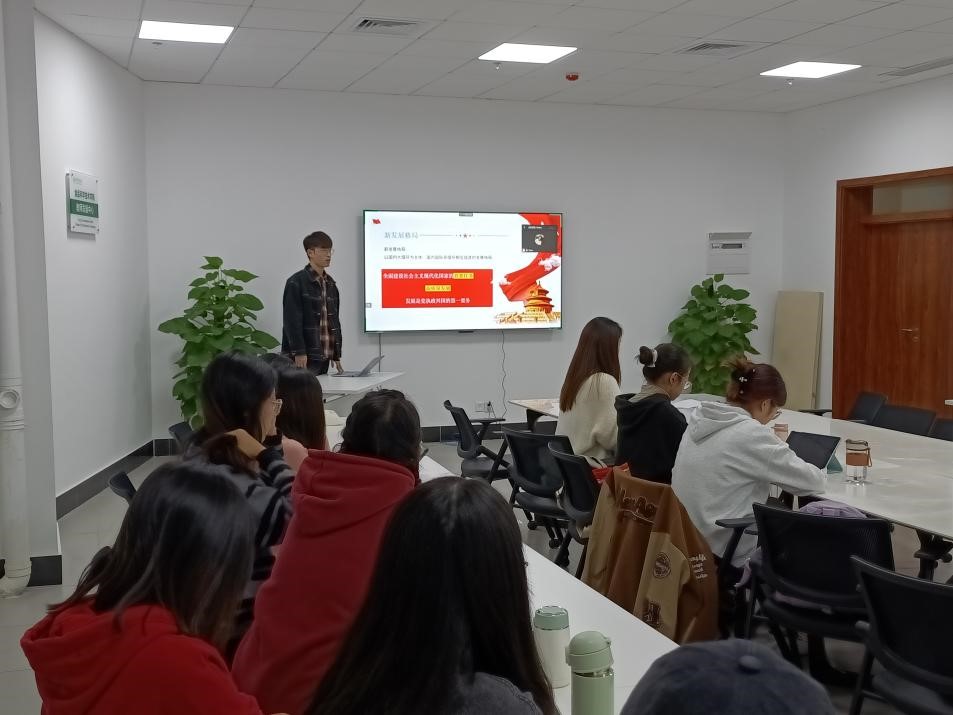 2022年11月22日晚,食科院本科生第二党支部二十大专题学习会在新工科楼120召开。党支部书记许宝丹老师以“加快构建新发展格局,着力推动高质量发展”为主题做领学,支部全体成员参加。
