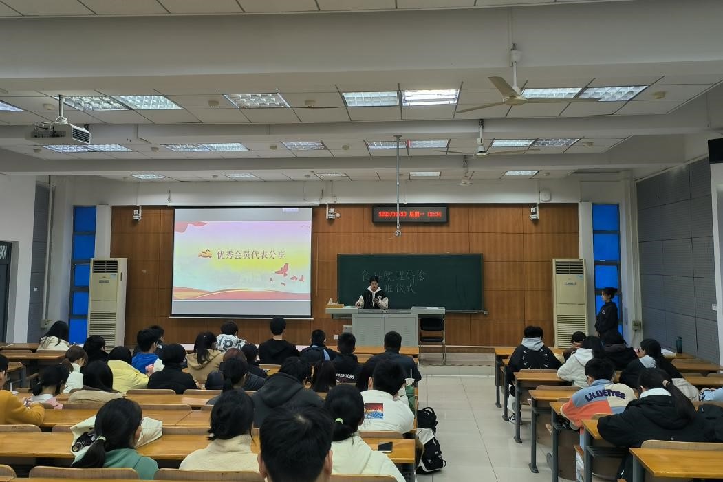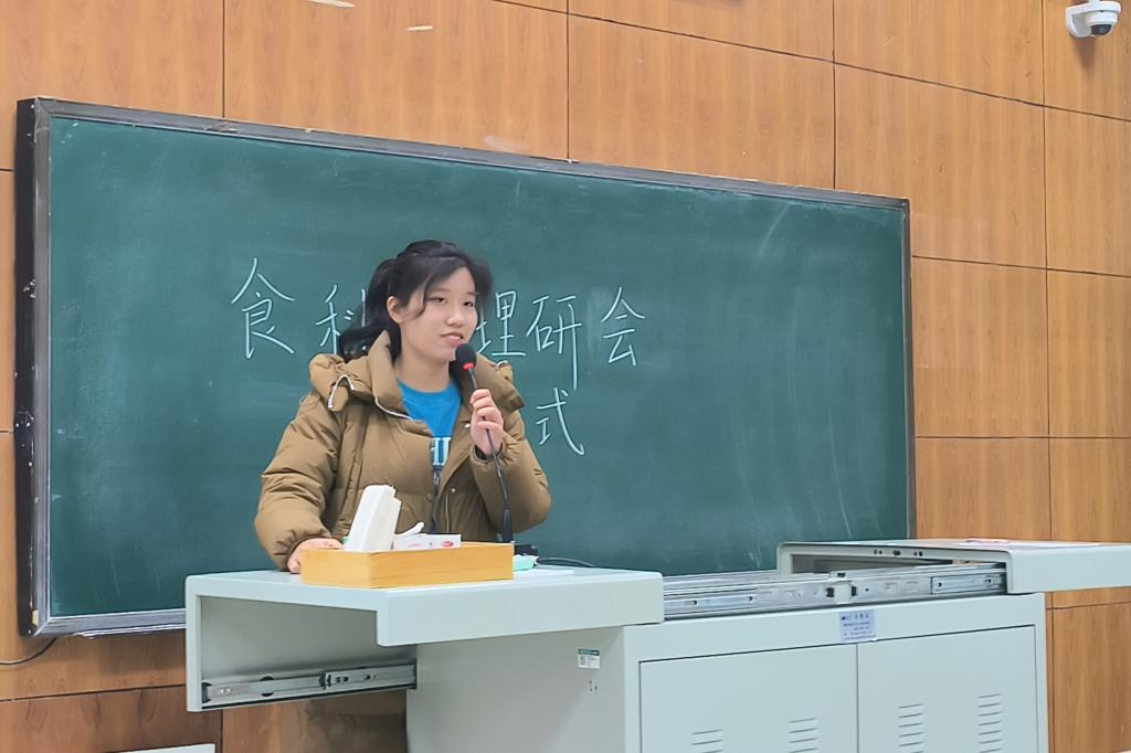 会议正式开始,第一项为优秀会员表彰大会,由食科院联席会代表人为上一届优秀会员颁发奖状。紧接着,熊晨曦作为优秀会员代表上台发言,向大家分享她的学习感悟。她真正走进了“理论研讨会”的真谛--实践出真知。她提出学习的两个方法:灵活运用唯物辩证法以及团结协作。“我们是研究者、讲述者”,要将严肃严谨的思想精神与活泼生动的学习形式紧密结合,做“课堂的主人公”。